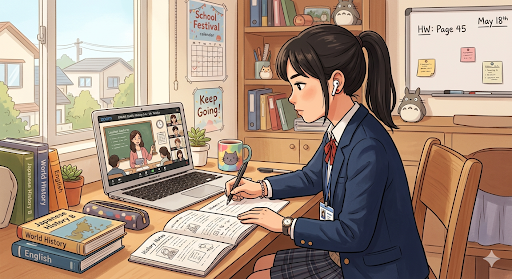 予備校の授業は全て双方向オンライン授業です。